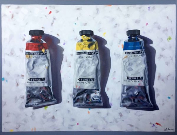 Robison’s whimsical oil paintings use strong color and bold compositions to explore a broad variety of subjects inspired by her day to day experiences. She holds a BFA from Utah State University.