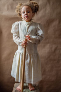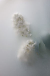 Some images in Thrall allude to whiteness as a blanketing, nearly invisible pressure. The first four photographs in this series reflect this obscurity– as if the viewer is peering into a foggy space, looking through a window but not seeing the entire picture or object underneath. Once the mist has cleared, Mestrich refuses the standard visual representations of mother and child. She does not appear in the photographs nor does she record the events of her home life. Collaborating with her children, she allows them to dance, be unruly, wondrous and curious in Nature. Her compassionate, protective role as Mother or Creator, mirrors her own upbringing and awareness of the world as a Buddhist.